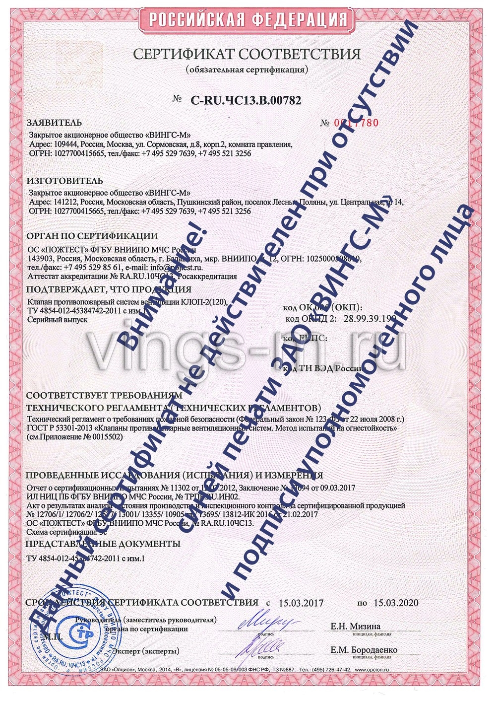 Свойства огнезадерживающего клапана КЛОП-2 В (120)